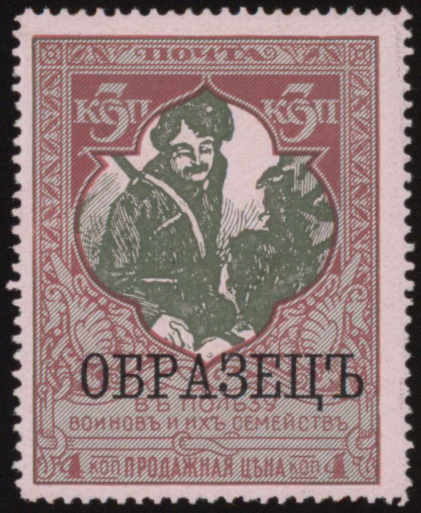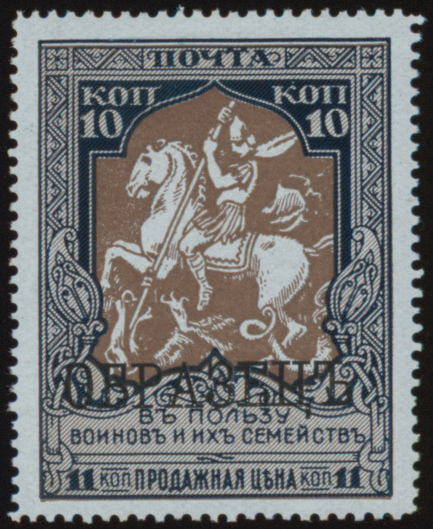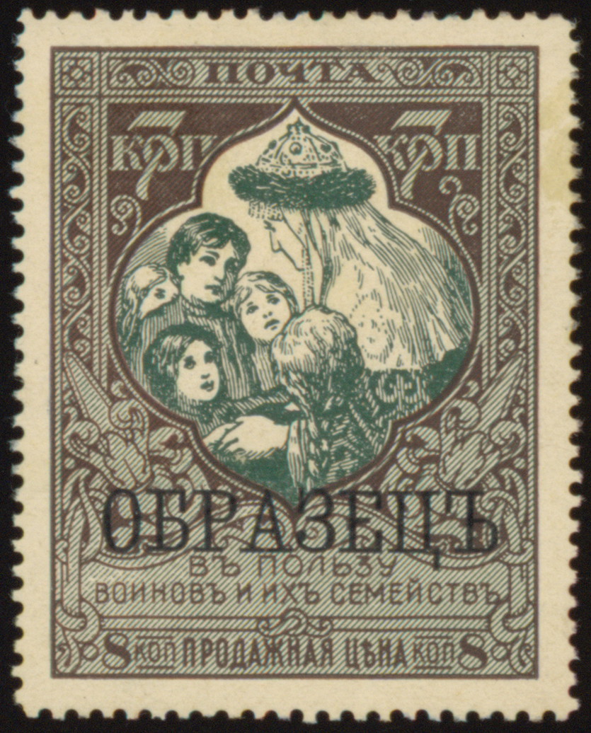 Рис. 4. Образцы почтовых марок РИ. 17.11.1914. Серия почтовых марок «В пользу воинов и их семейств».