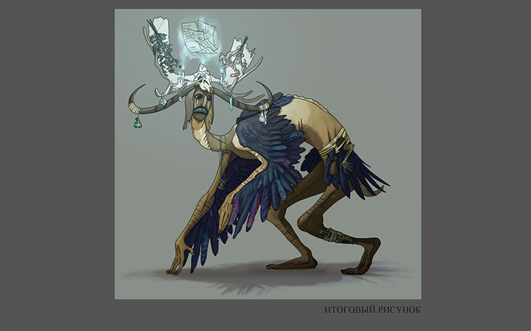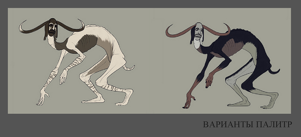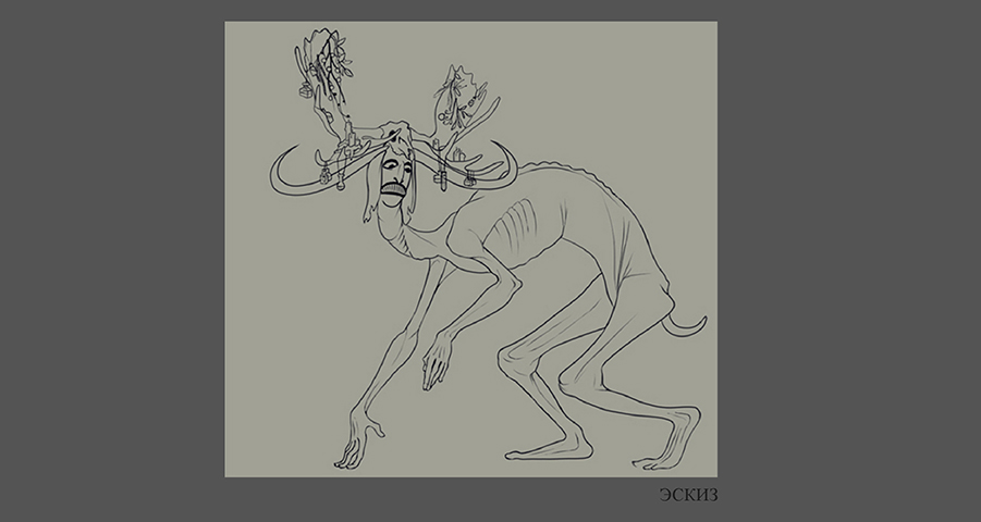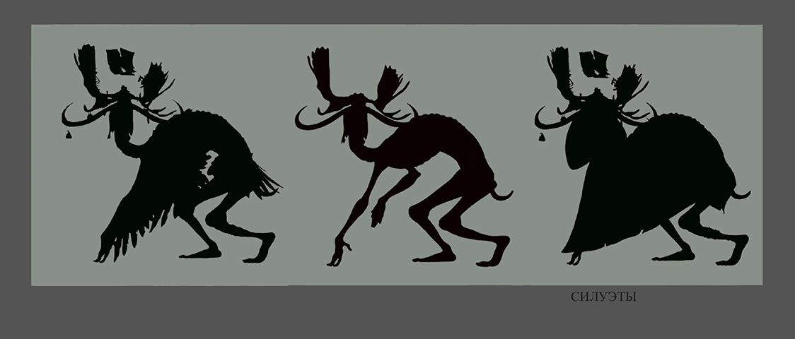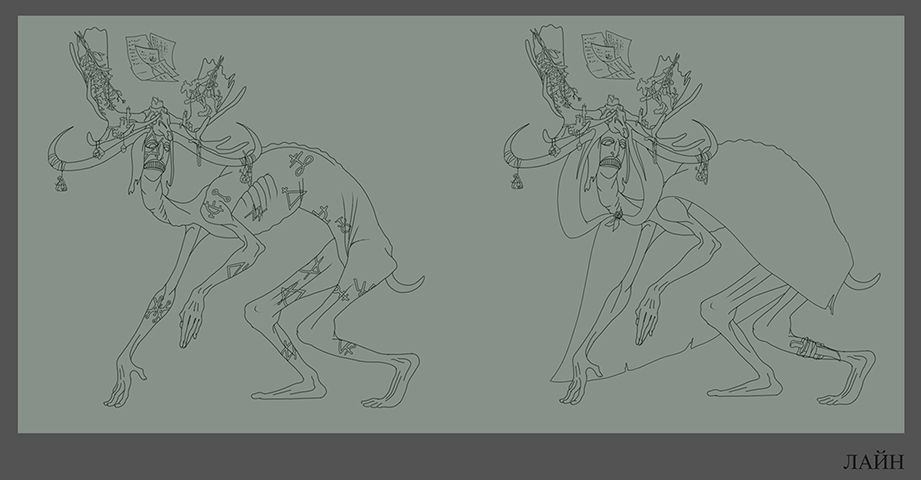 После лайн-арта выполняется светотеневой разбор для придания персонажу контрастности и акцентов, подчёркивания характерного силуэта (рис. 10, 11, 12).